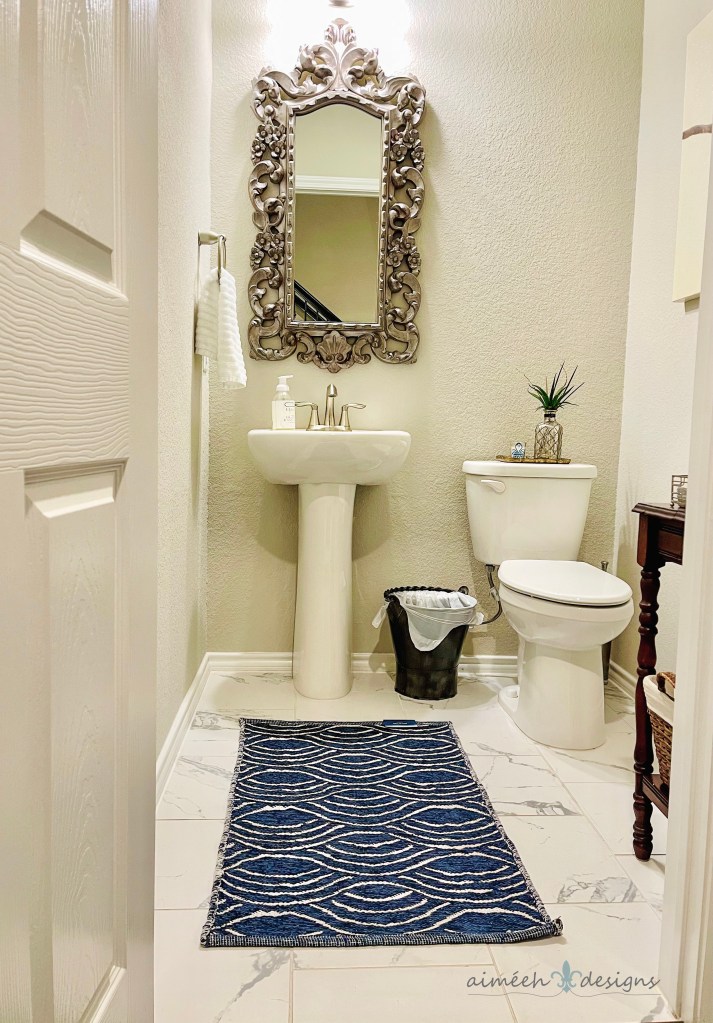 Love my new rug. I’m a sucker for blues, especially navy, with white of course. Yay or Nay? What do you think? #homedecor #rugs #navyandwhite #aimeehdesigns