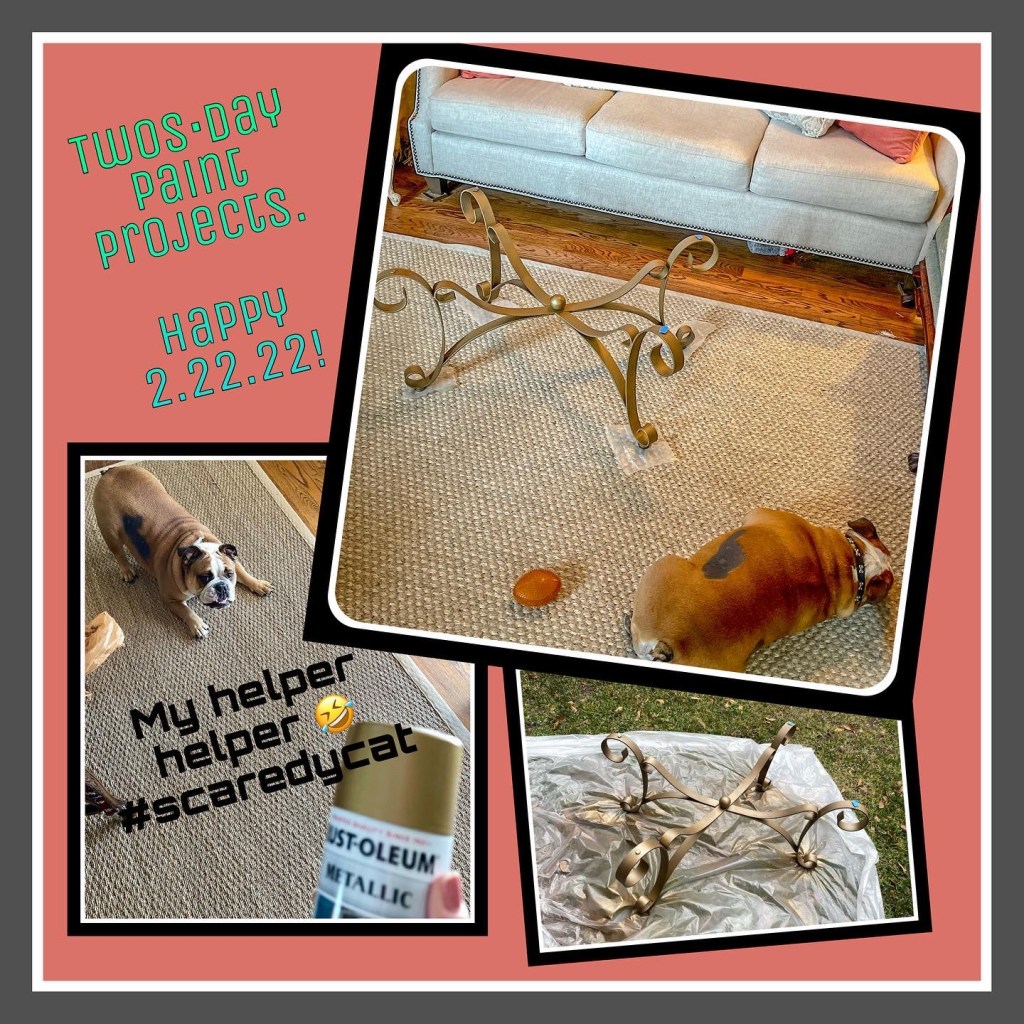Hope you’re having a tremendous twos-day! 2.22.22 A project for my sister. She likes her coffee table, but wanted to spruce it up a little bit and change the color. She chose a matte gold for the metal base. It was antique bronze. I used Rustoleum – Metallic Champagne Bronze spray paint. It came out fabulous and she loves it! #rustoleum #spraypaintprojects #metallicchampagnebronze #aimeehdesigns