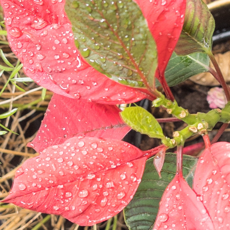 How the raindrops just sit-On pretty poinsettias-After the storm. 💧 #aiméehdesigns #naturephotography 🌸