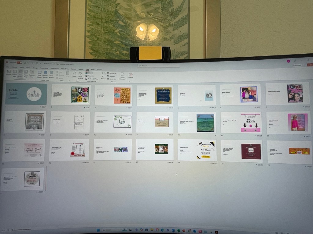 Putting together a portfolio takes time and patience. I created it in PowerPoint then saved as a PDF. Sharing my design work is always enjoyable.